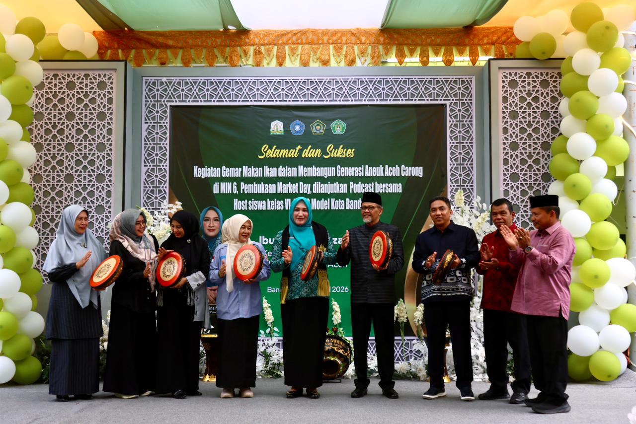 PewartaAceh | BANDA ACEH – Ketua Tim Penggerak PKK Aceh sekaligus Ketua Forum Peningkatan Konsumsi Ikan (Forikan) Aceh, Marlina Muzakir, melakukan kunjungan kerja ke Madrasah Ibtidaiyah Negeri (MIN) 6 Model Banda Aceh, Sabtu (18/4/2026). Kunjungan ini bertujuan untuk memperkuat kampanye Gerakan Memasyarakatkan Makan Ikan (Gemarikan) di kalangan generasi muda.