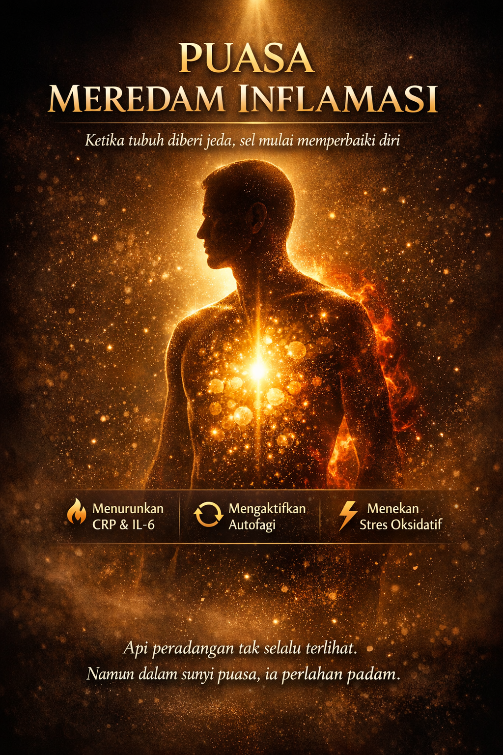 Itulah inflamasi kronis peradangan tingkat rendah yang menjadi latar sunyi berbagai penyakit modern: jantung, diabetes, gangguan imun, hingga penuaan dini. Dan di tengah dunia yang penuh konsumsi tanpa jeda. Puasa hadir sebagai tombol reset biologis.